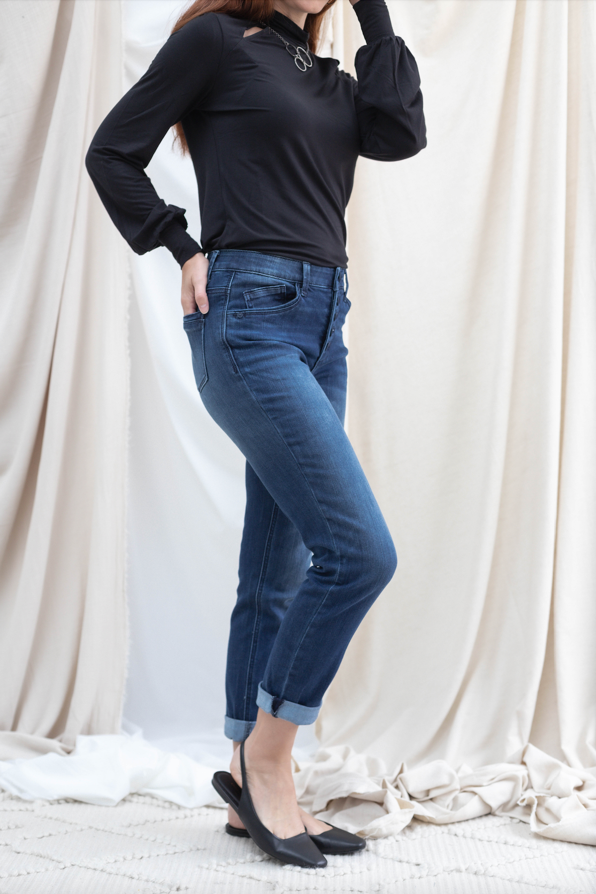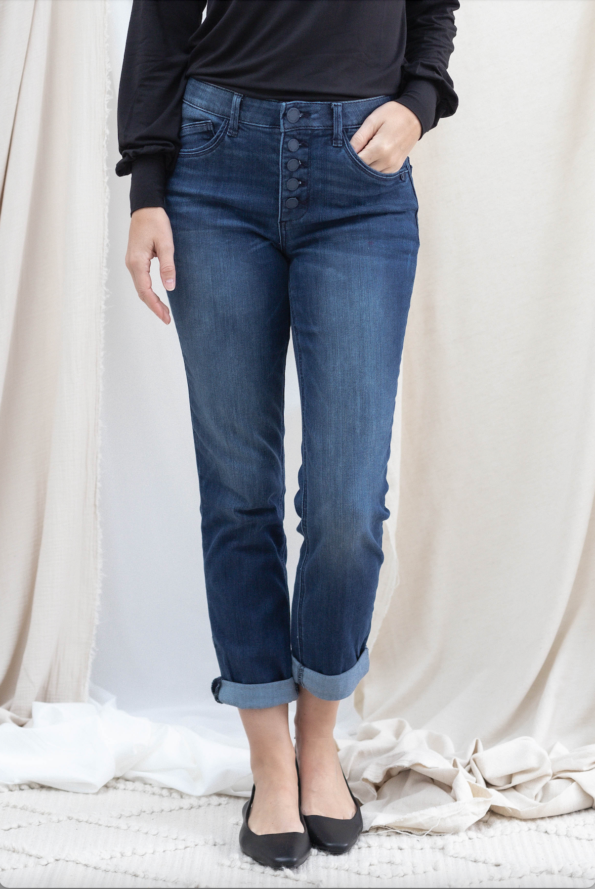 Button Fly Boyfriend w/ Roll Cuff Hem