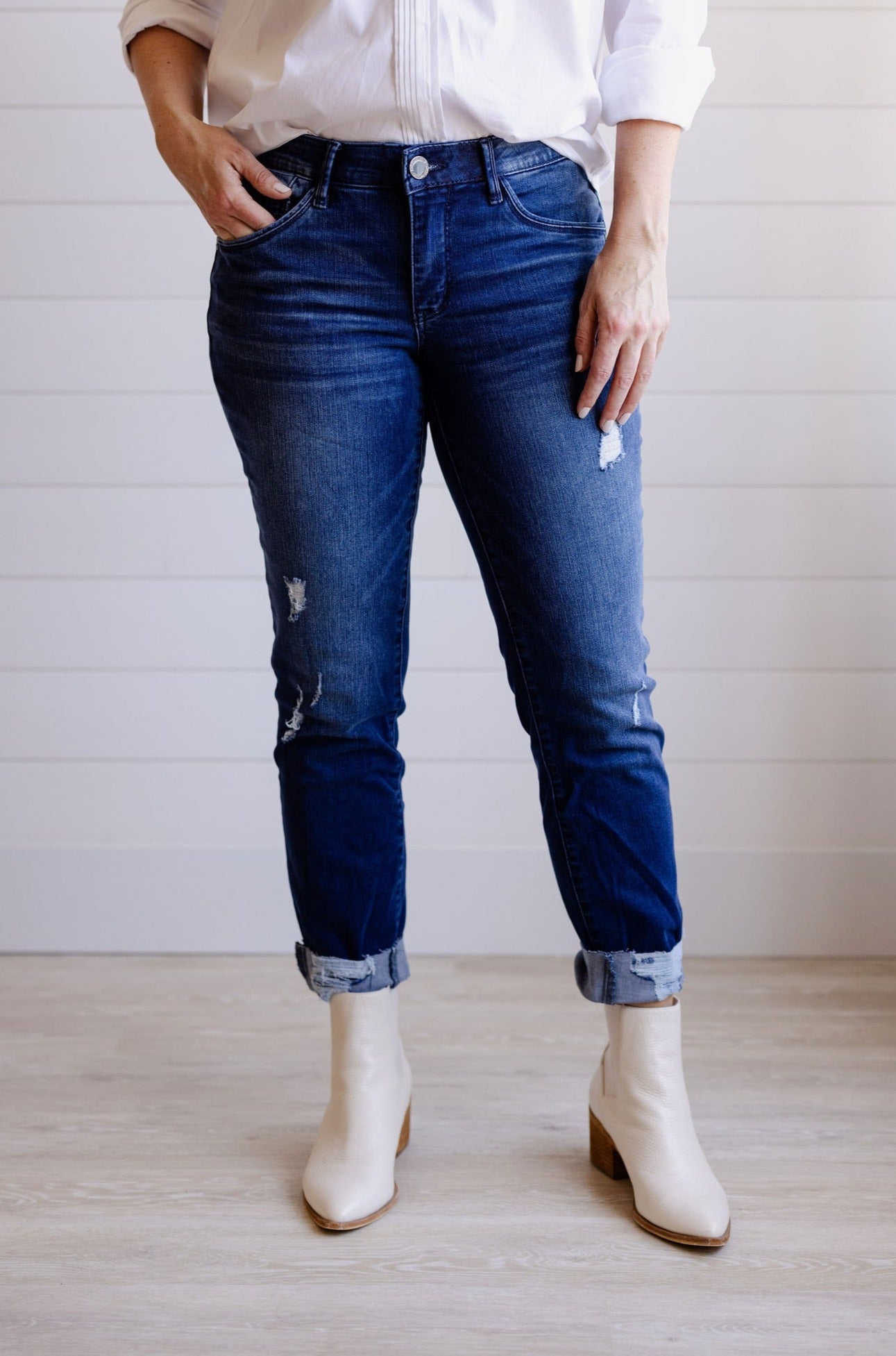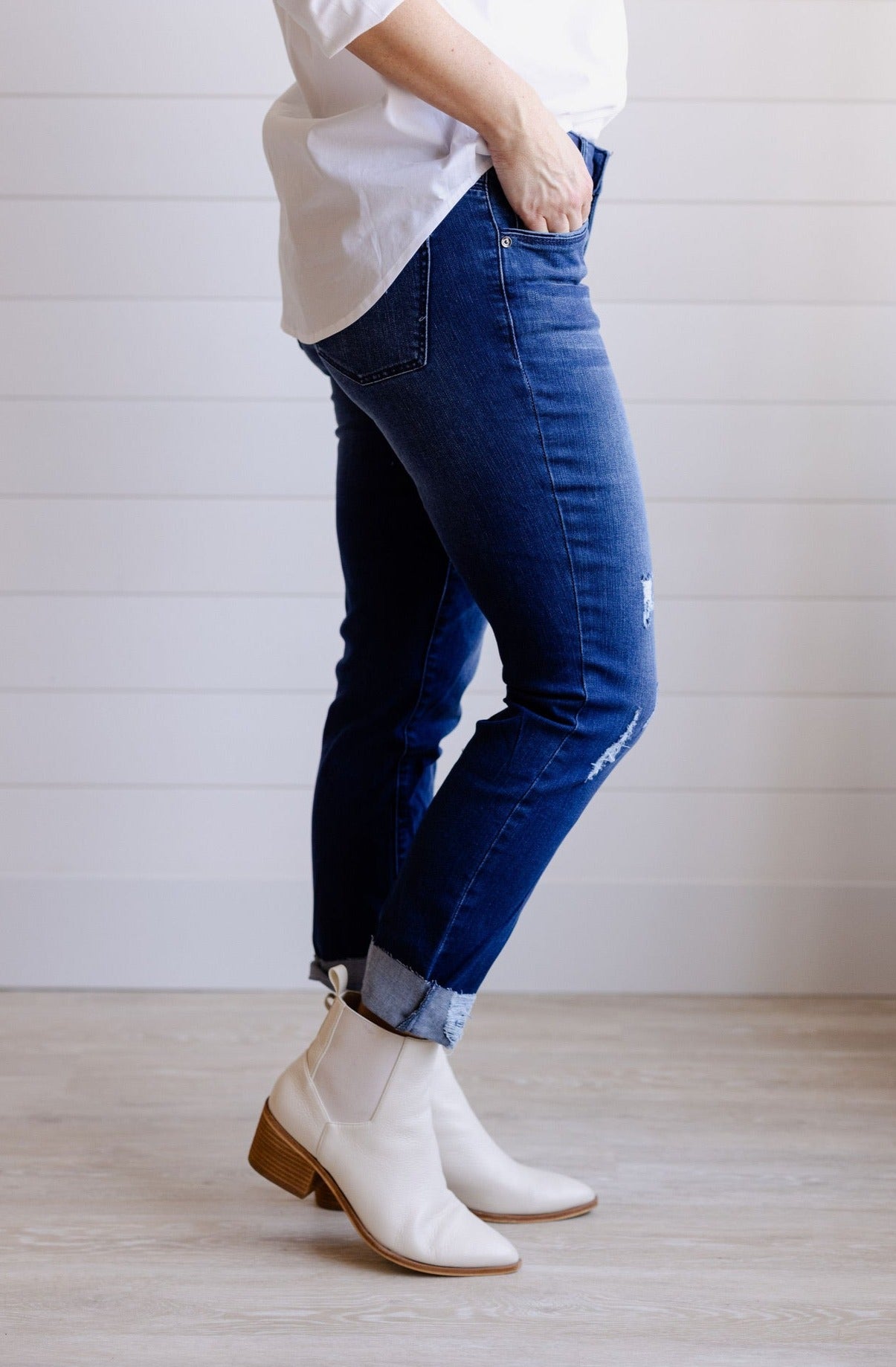 Straight Leg Girlfriend w/ Destructed Raw Cuff Hem