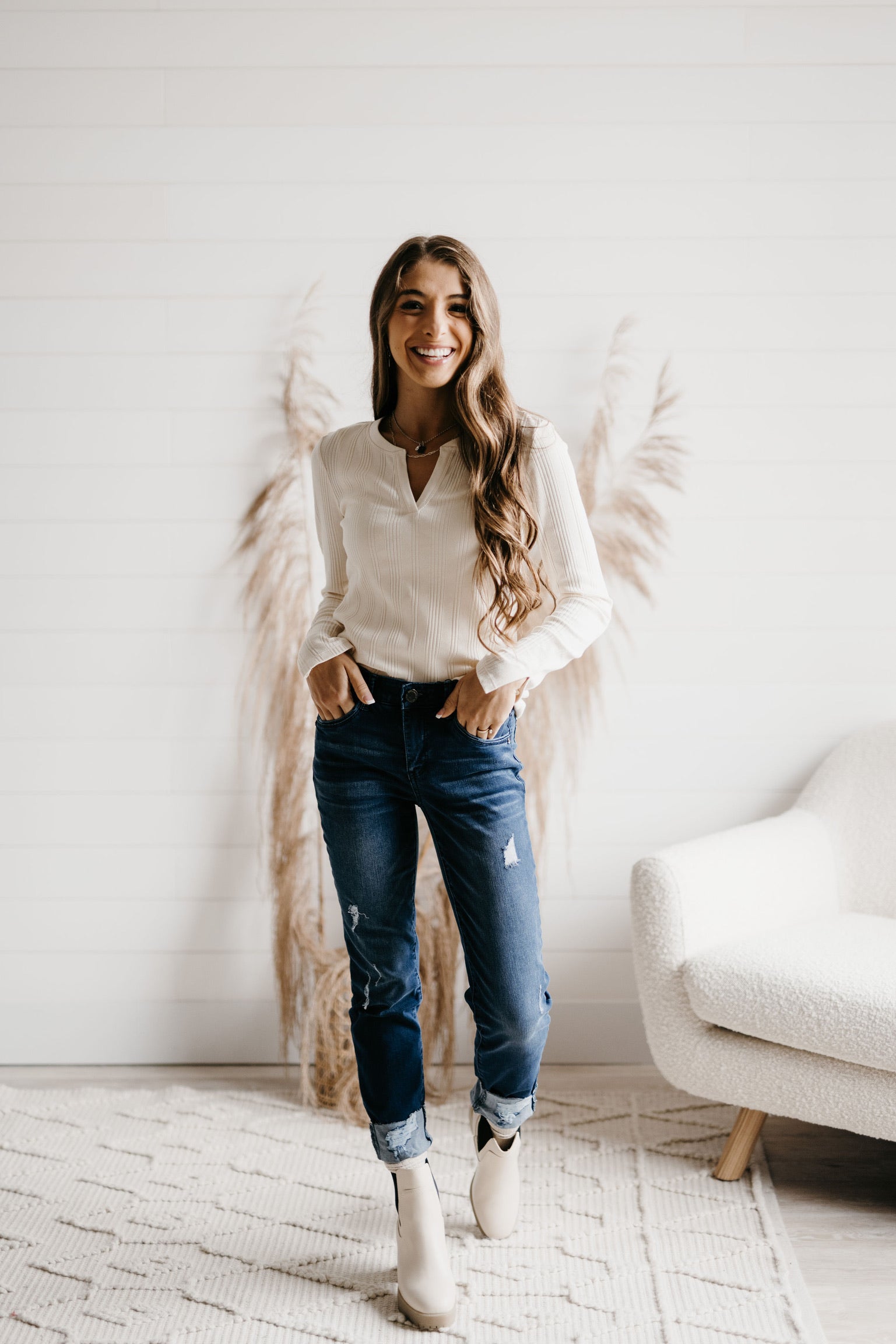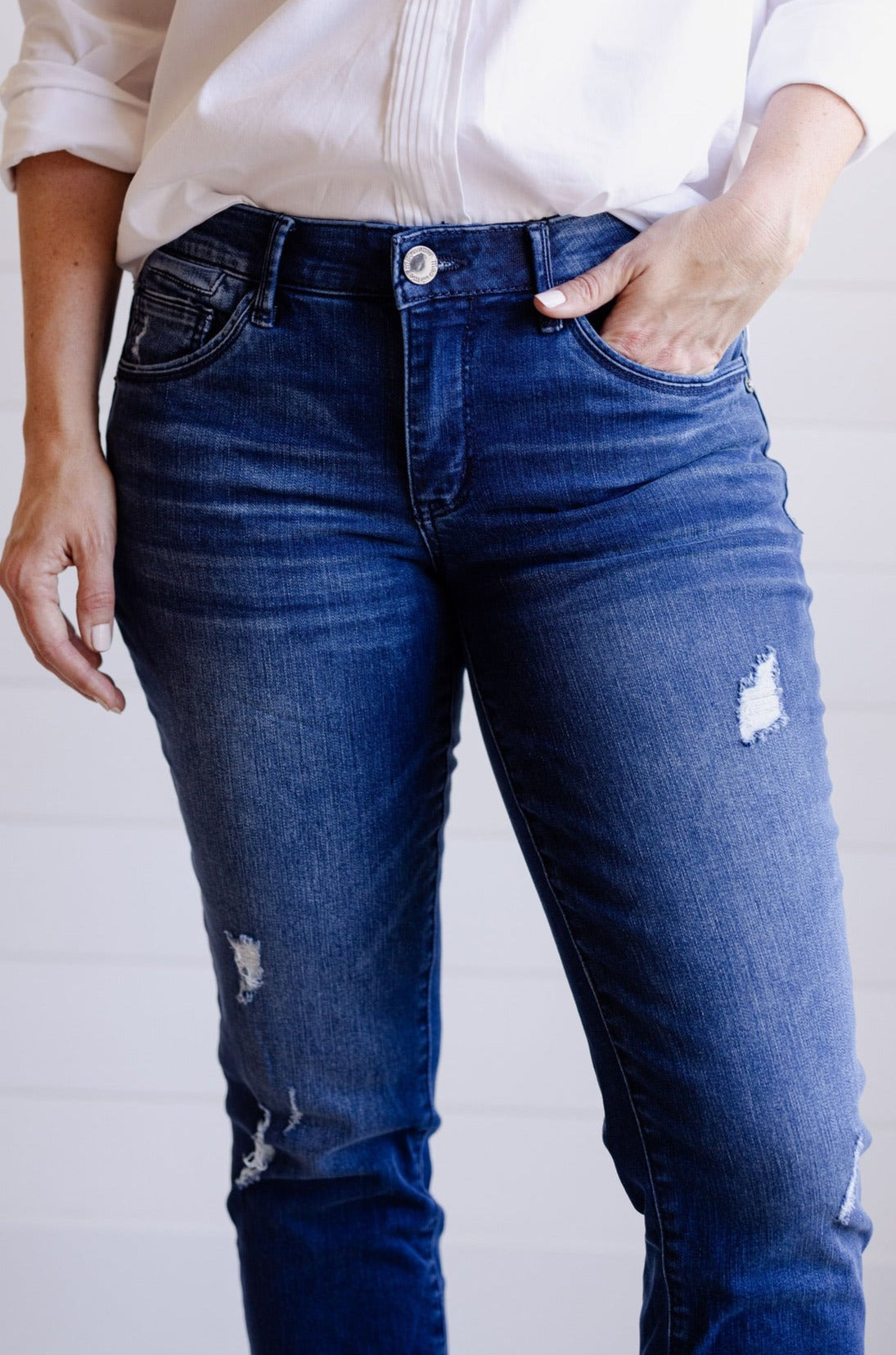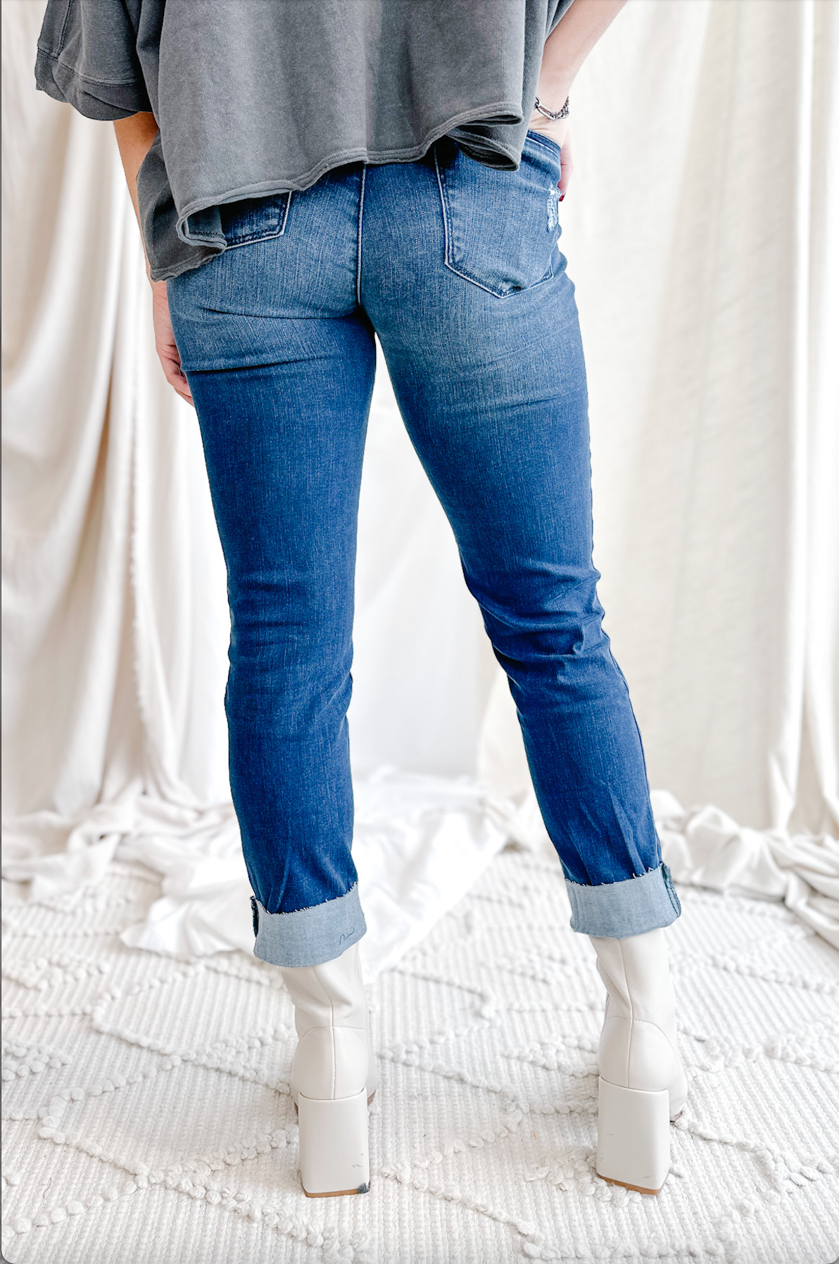 Think: Edgy, yet sleek. Destructed, yet sophisticated. Girlfriend, yet flatters your shape. Composed of our famous Mac and Me buttery soft material, this jean will bring you from day to night, and everything in-between!