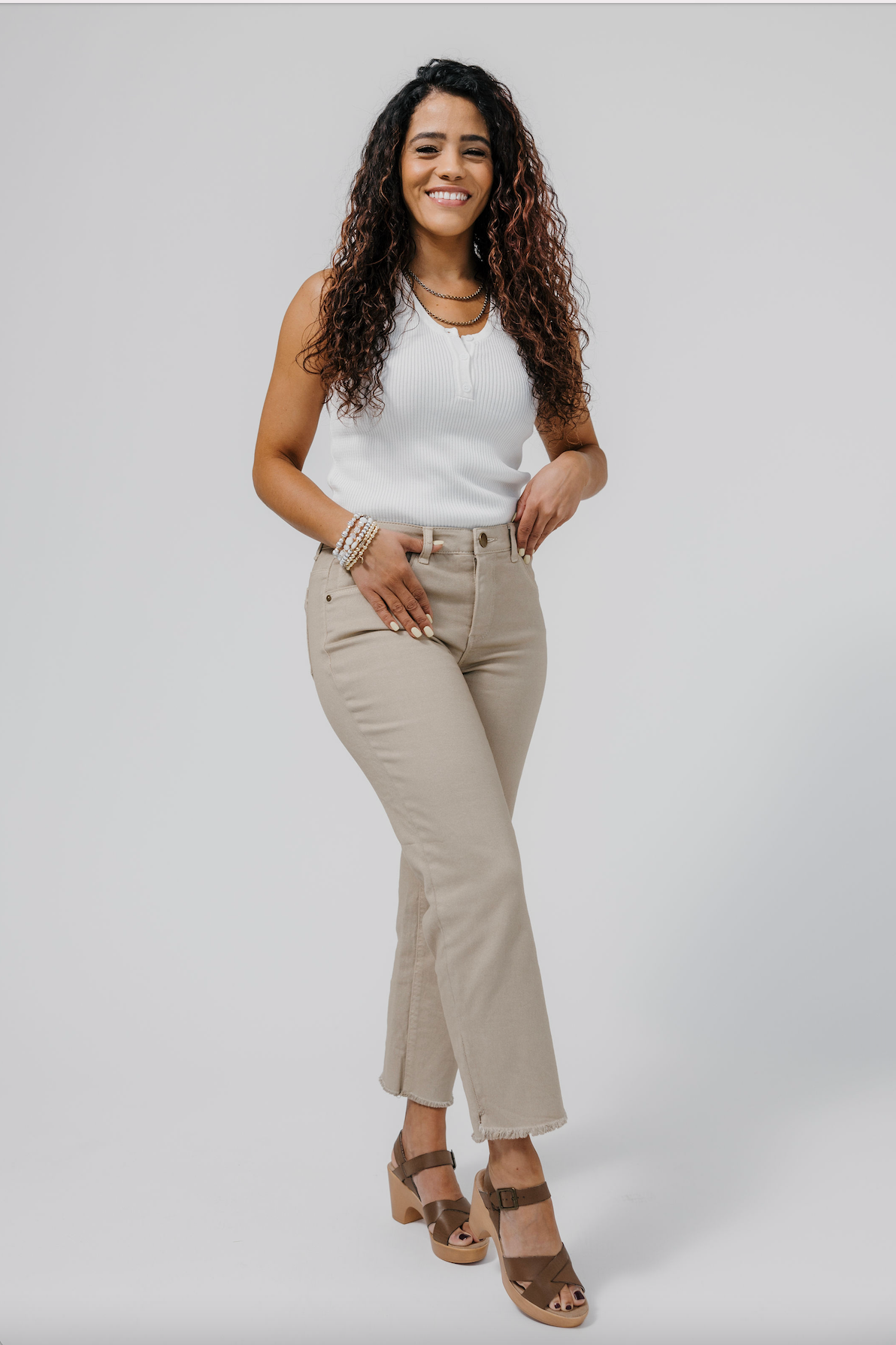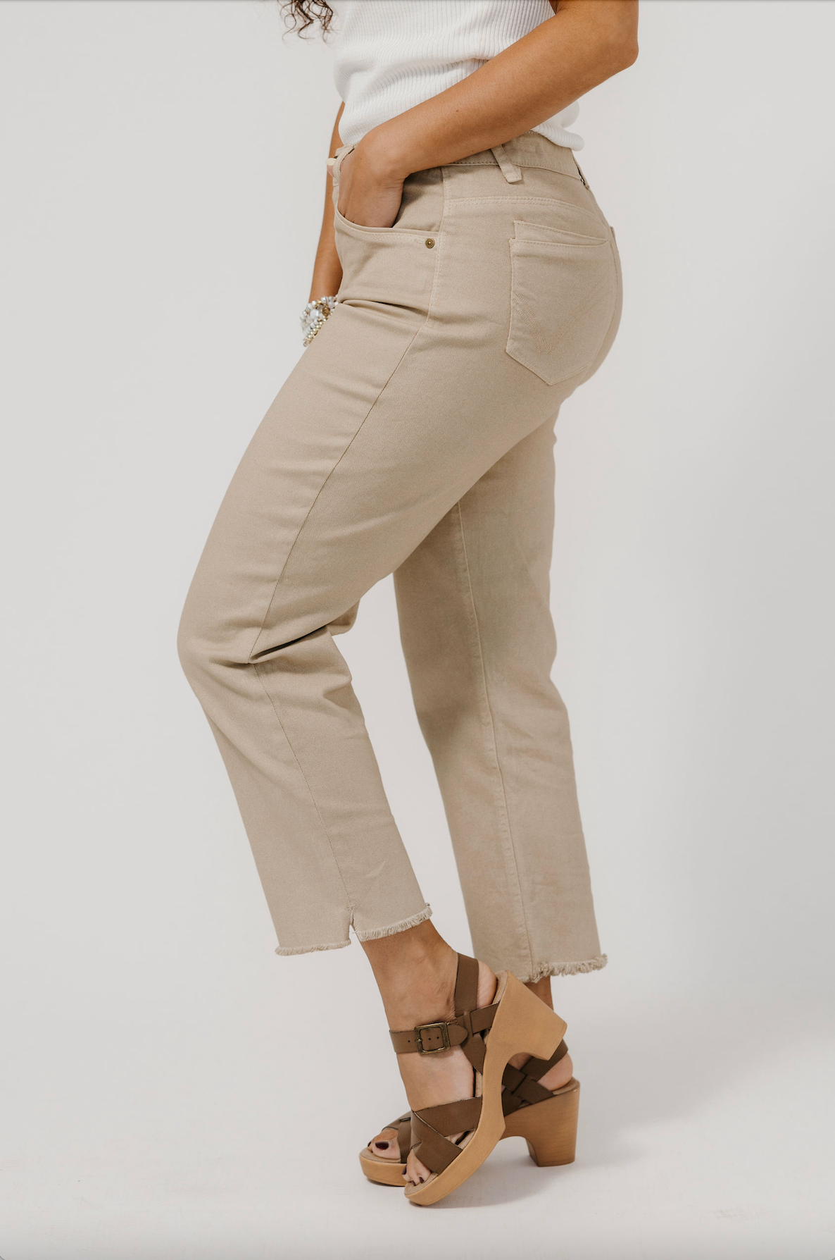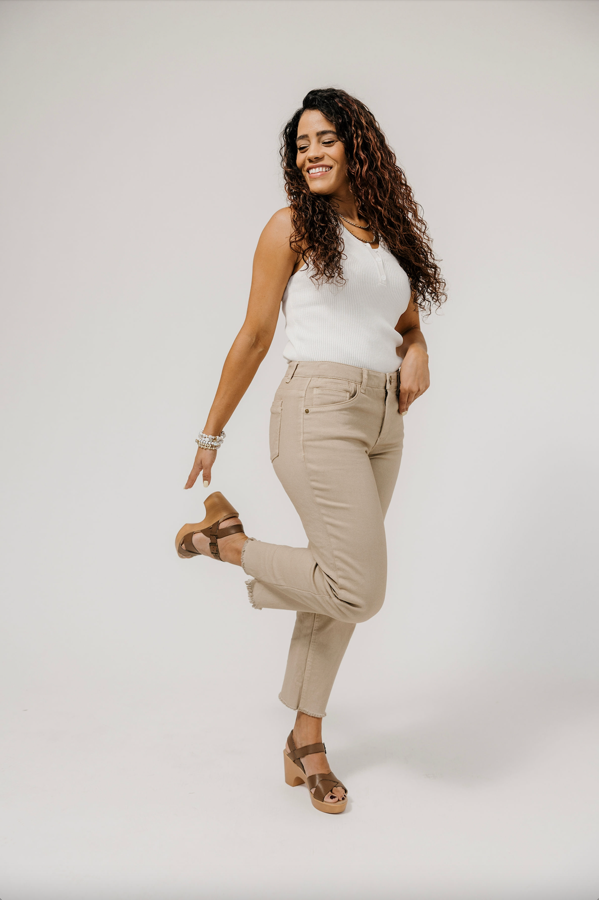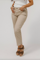 Step into the epitome of chic comfort with our High Rise Slim Straight Jeans, crafted in a stunning Pale Oak hue. Perfectly marrying elegance with casual style, these jeans are a wardrobe staple for those who appreciate a touch of unique detailing. This style is characterized by its flattering high-rise waist and slim straight fit that contours your figure while maintaining a relaxed feel.