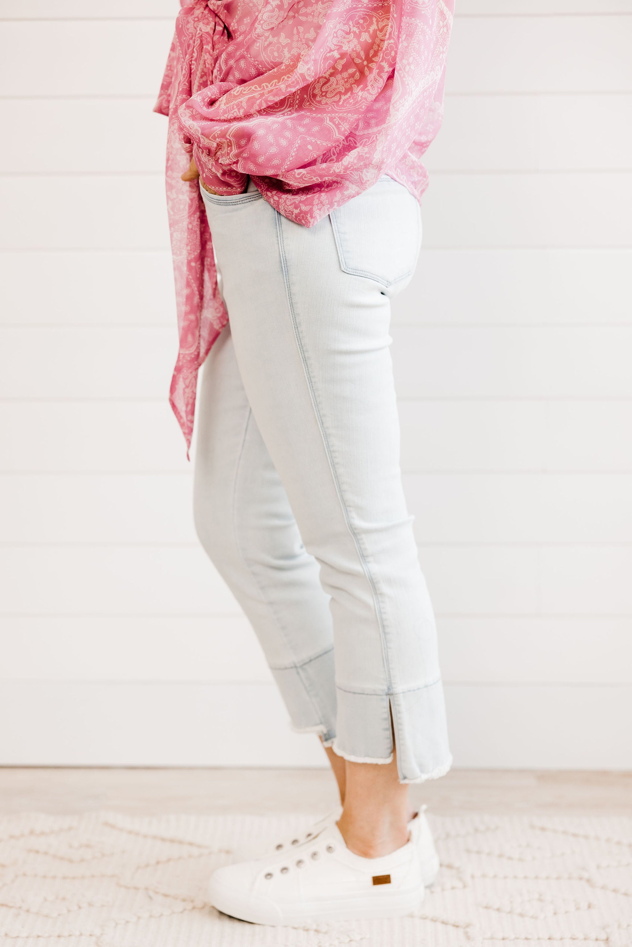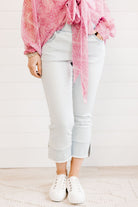 Fray Hem Kick Flare in Powder Blue