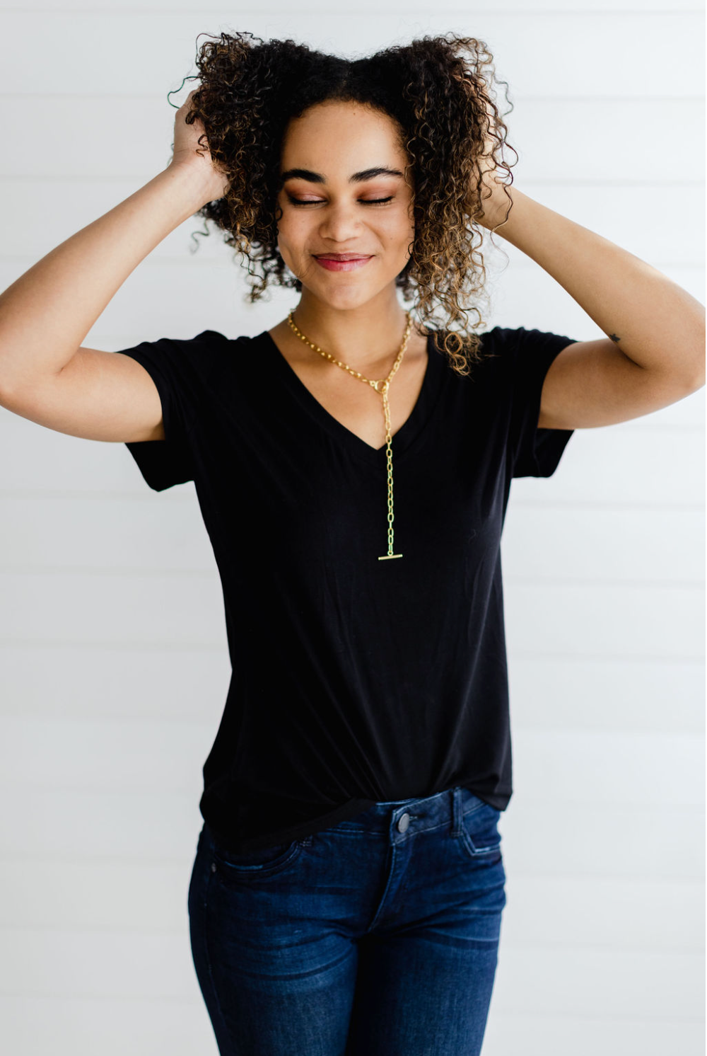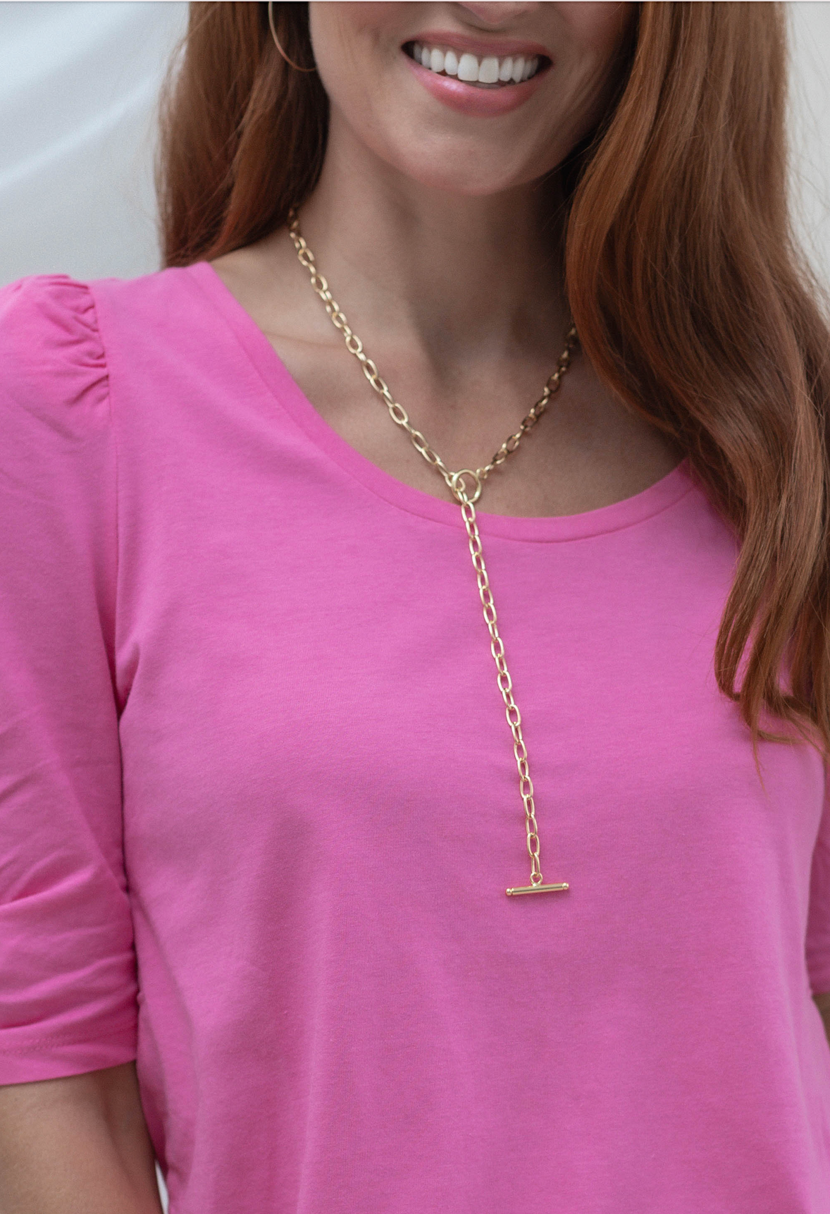 Easy to layer, and easy to put on with its toggle detail. Wear the toggle in the front, the back, and layer away with any of our Mac and Me necklaces!
