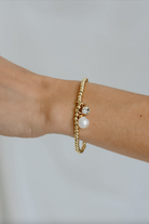 Our gold beaded bracelet with a freshwater pearl and signature Mac and Me stone. Great for layering, and classy enough to stand on it's own!