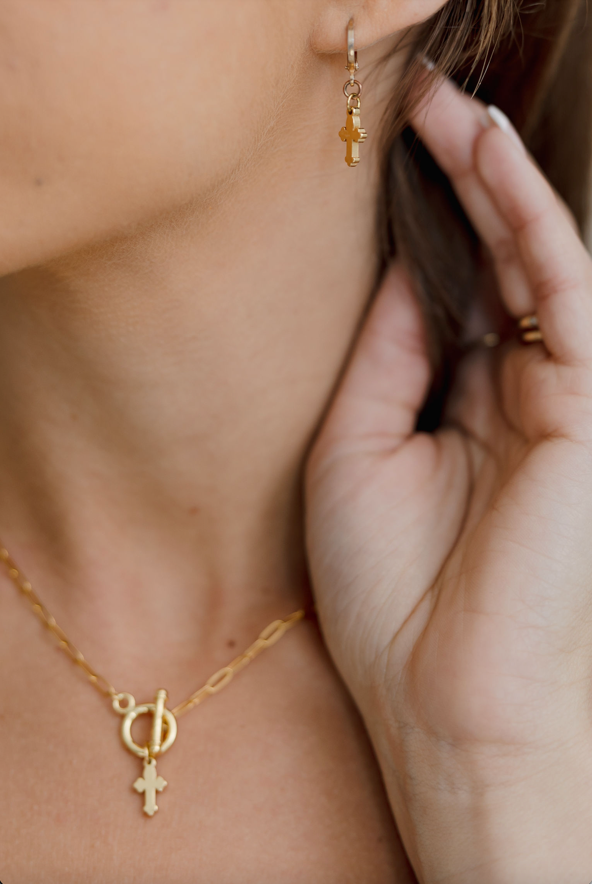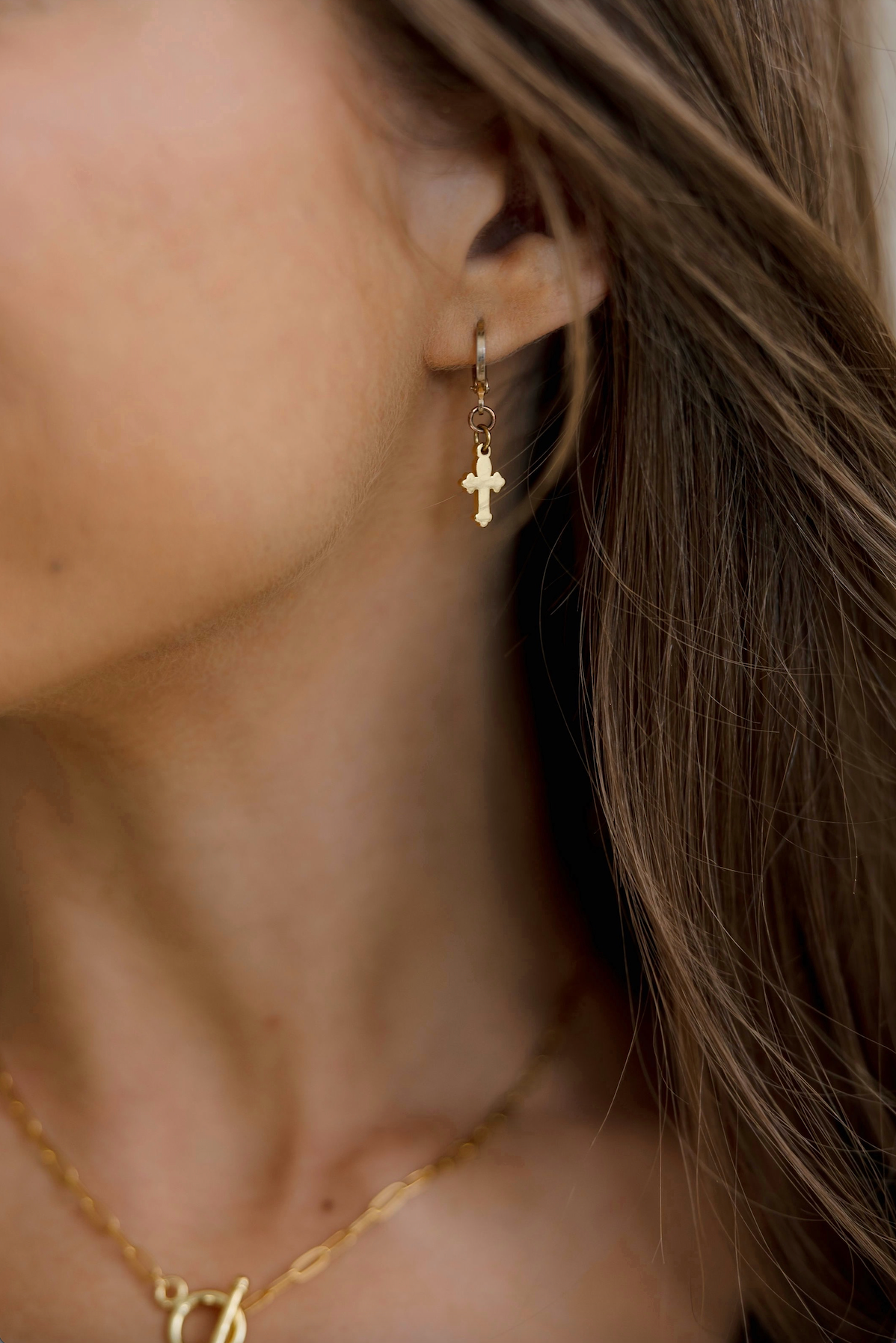 Our best-selling dainty cross huggie earrings feature a small yet thicker cross, perfect for pairing back to the rest of the Bella collection!