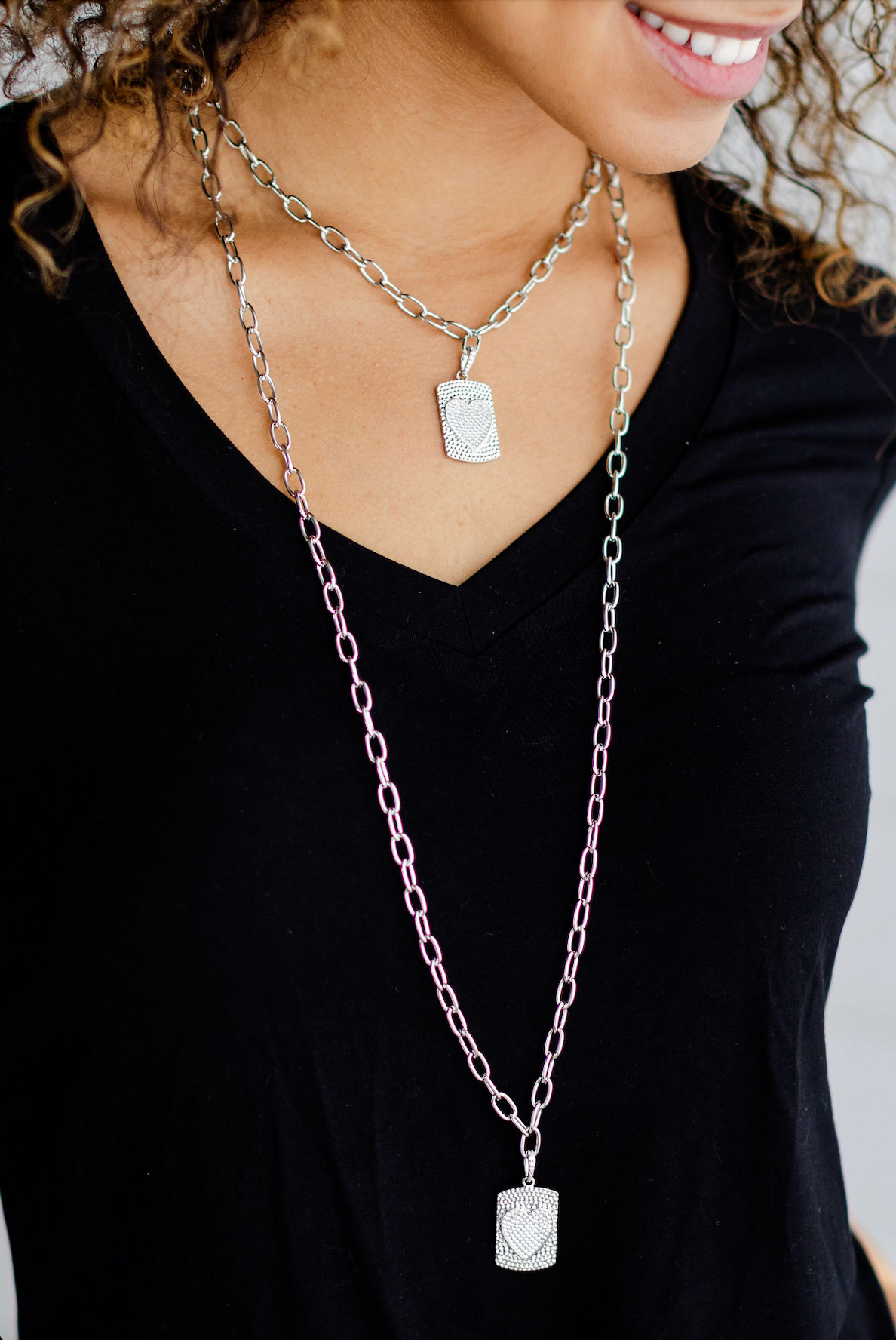 Complete with "you are so loved" in Mac's handwriting, and a heart inset with pave crystals, this reversible necklace is encouraging and versatile. Wear it down as a 36", or double wrap it to create a double-strand shorter necklace.