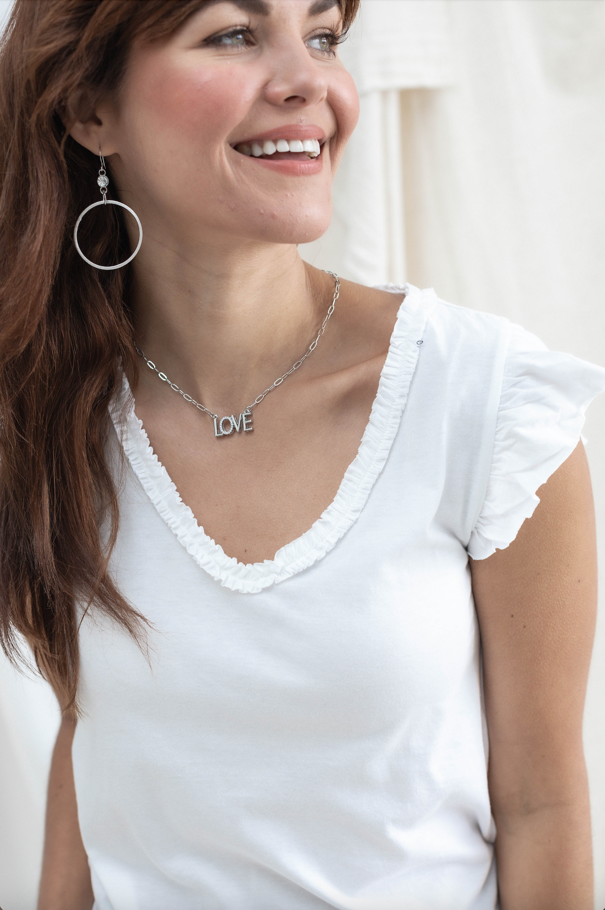 Spread LOVE wherever you go, with our dainty love box necklace! Featuring pave crystals and a paperclip chain, there's not much this necklace won't go with. For a layered look, pair this back to our 24" or 36" paperclip chain necklace.