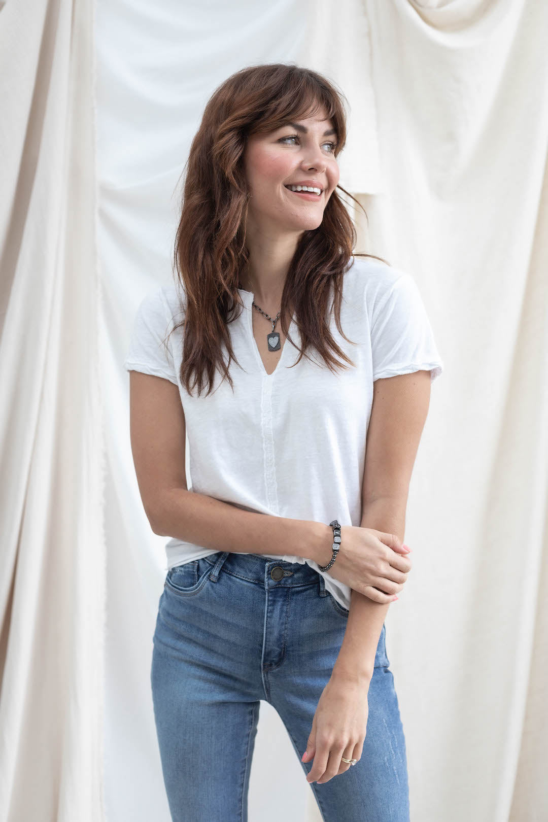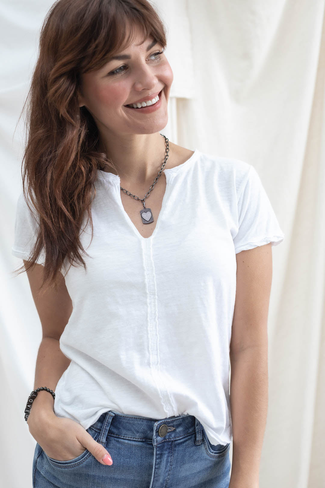 An elevated go-to tee, this Mac and Me basic is easy to layer or wear on its own.