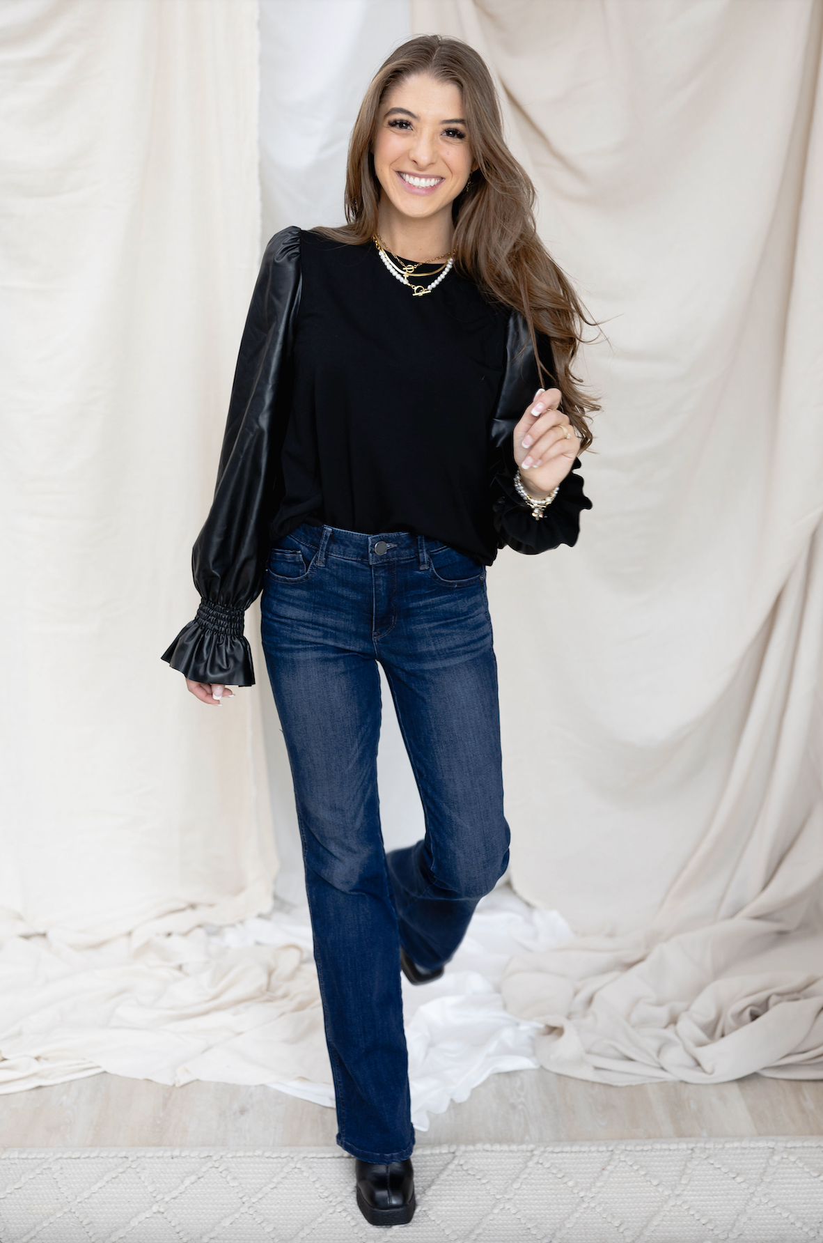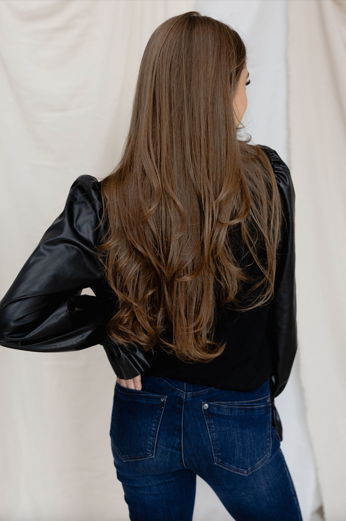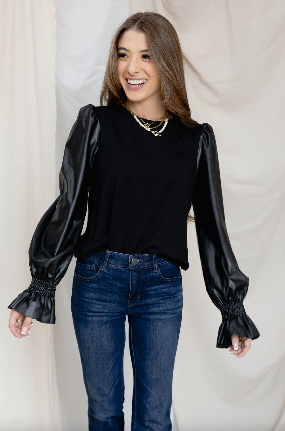 The best of both worlds - vegan leather and a soft, stretchy body. Perfect for that dressed-up-but-still-comfortable look, because we know it's important to be both!
