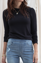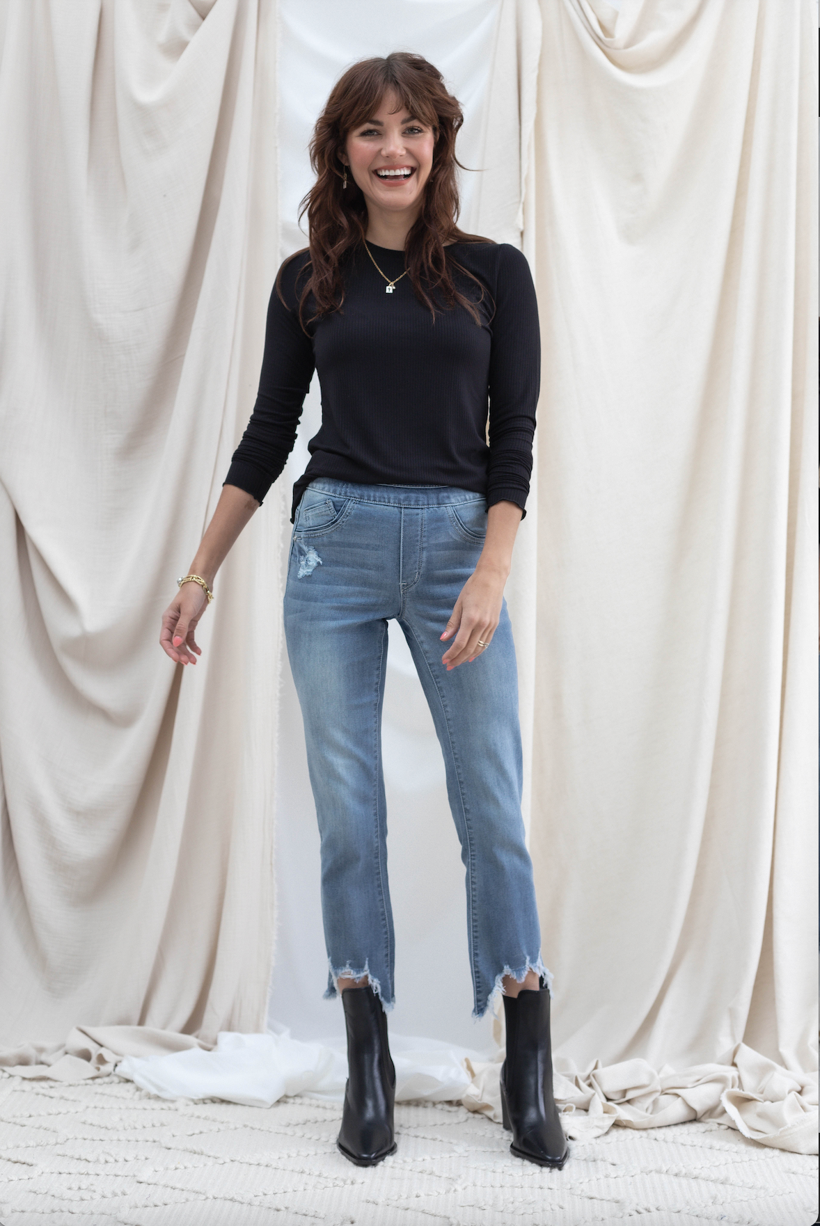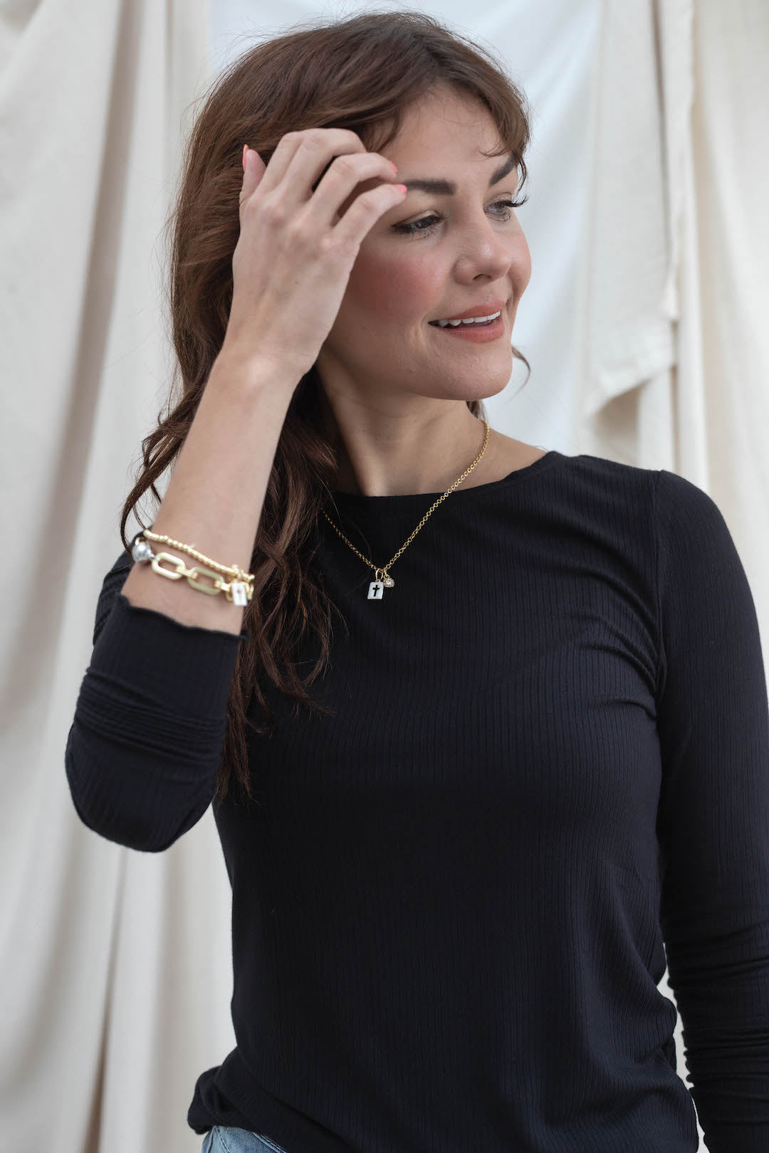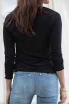 Your new favorite basic. Lightweight, a buttery soft rib material, and gorgeous to wear alone or layered under your favorite jacket.