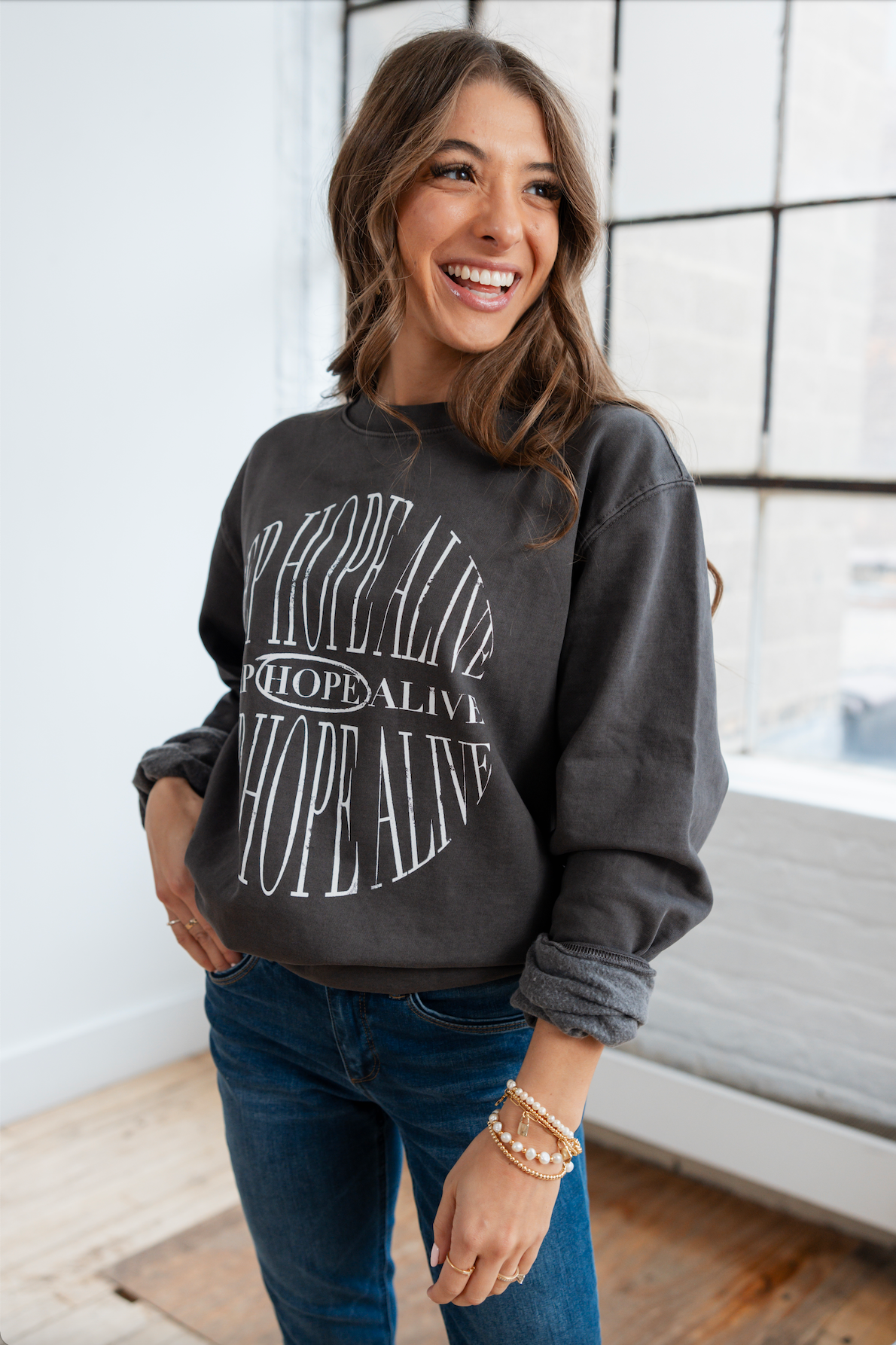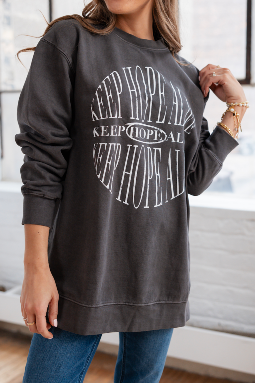 Keep Hope Alive - our first Mac and Me boyfriend style sweatshirt makes a debut with a retro-band-inspired design, “KEEP HOPE ALIVE.” Something we all need to remember - in all of life’s circumstances, to keep hope alive!