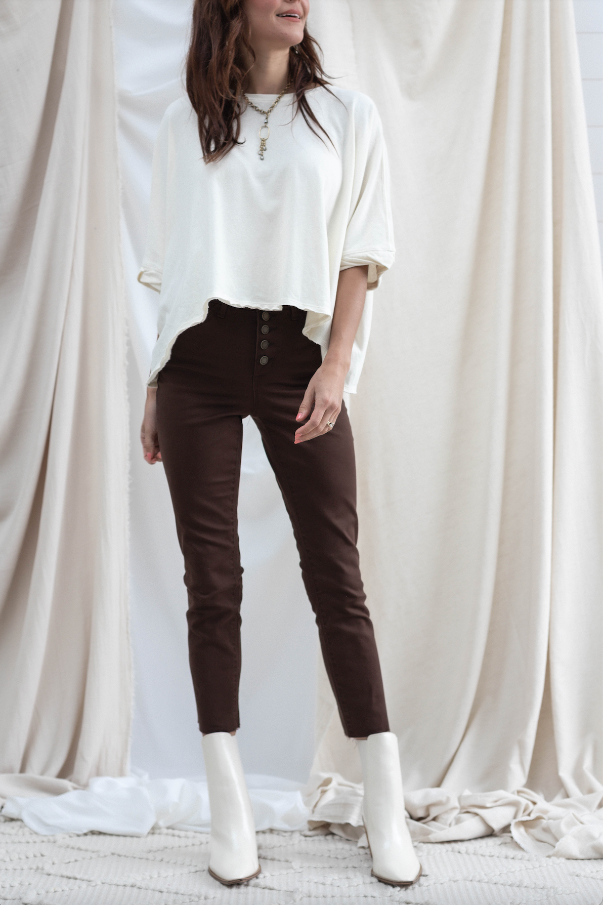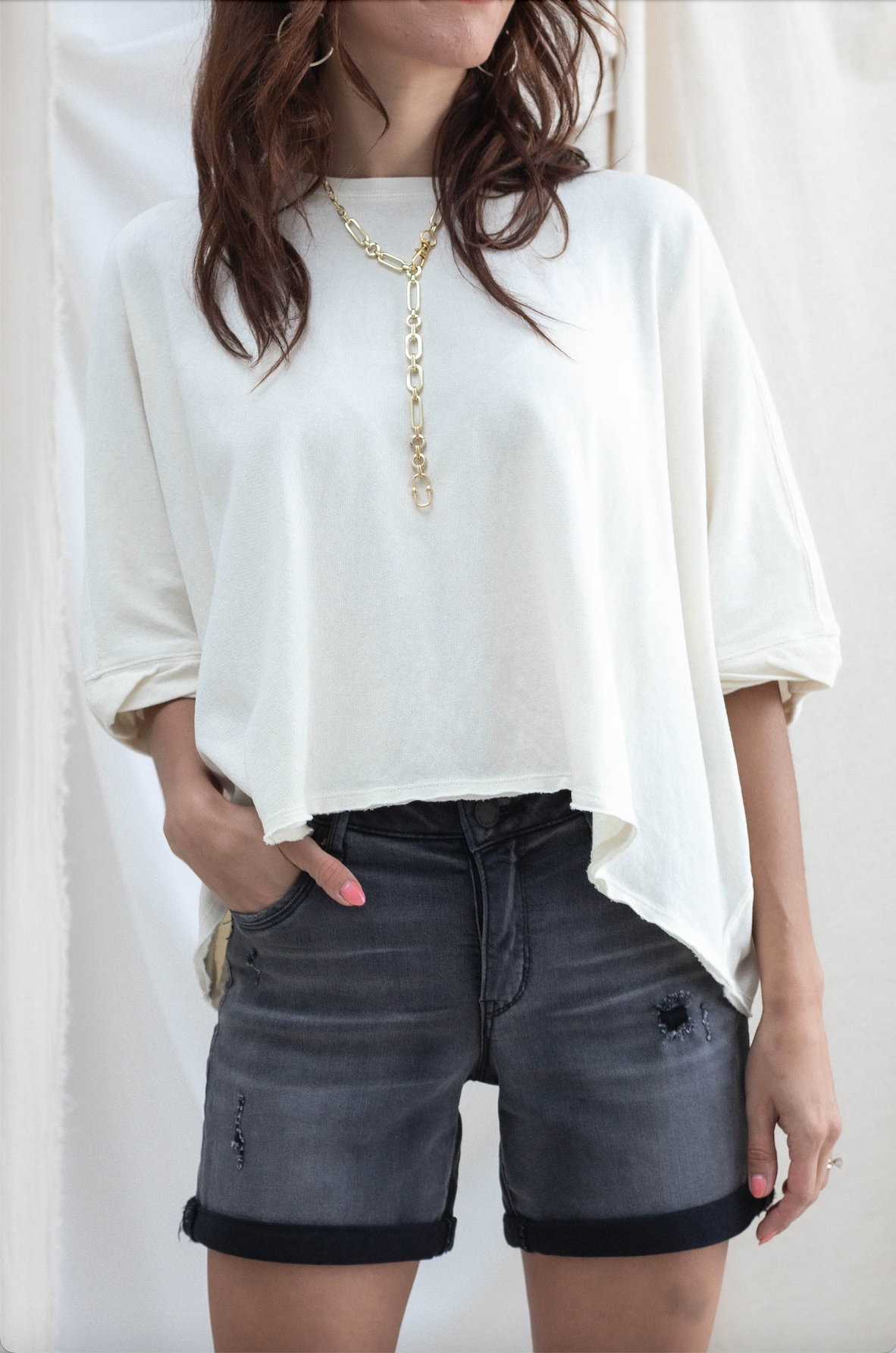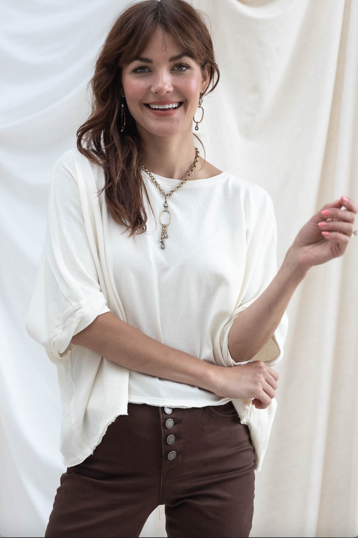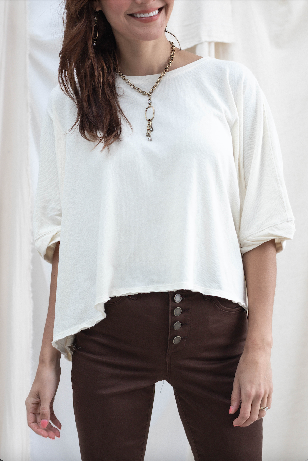 One of our customer favorites. Effortless, flattering, and so easy to style. It has a vintage hand to it, and has optimal air flow for hot days!