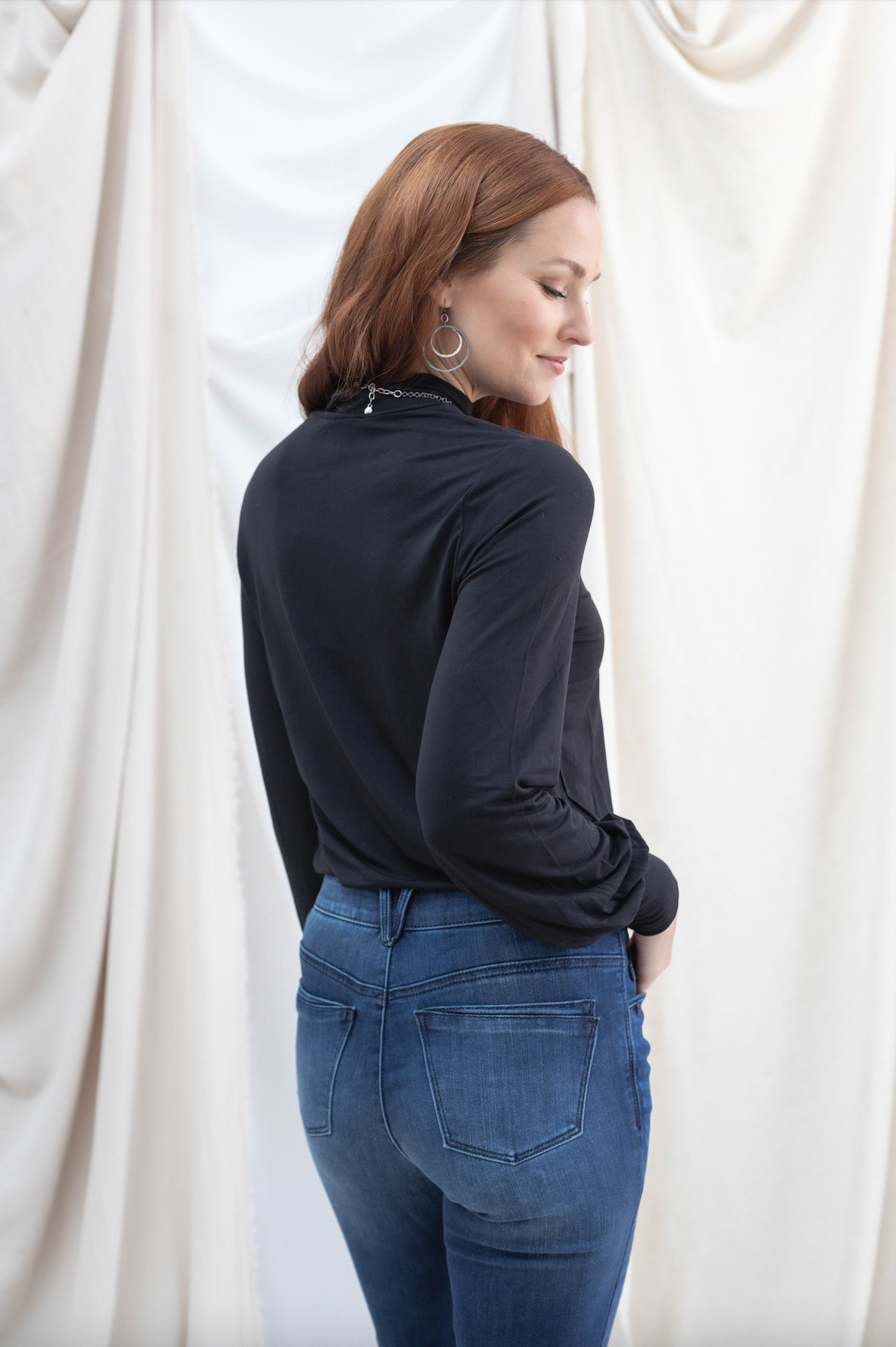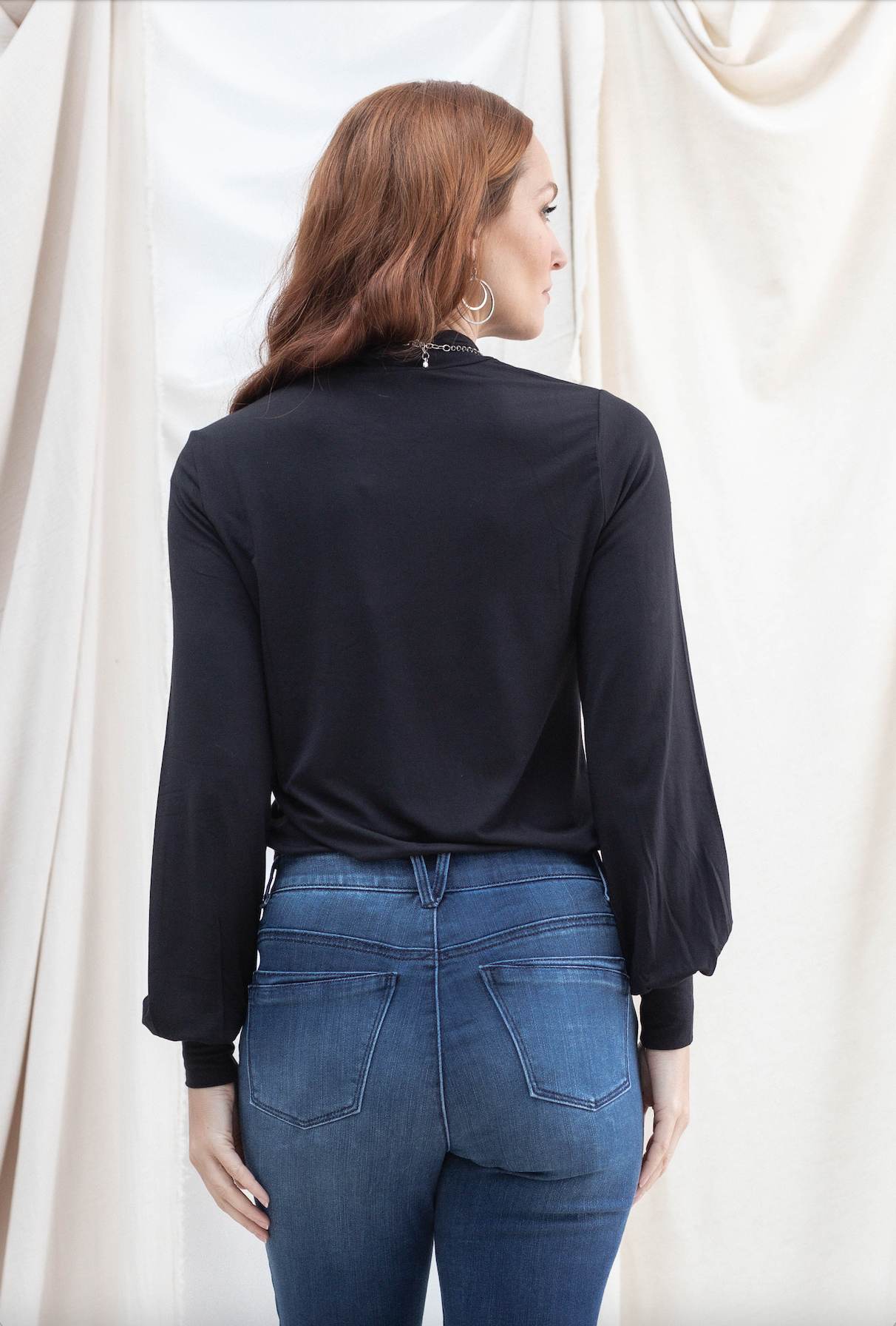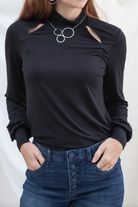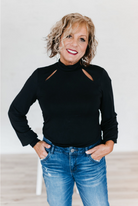 Cut Out Mock Neck Long Sleeve Top