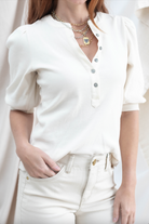 Just the right amount of sleeve and neckline detail. A soft, comfortable piece that you can dress up or down.