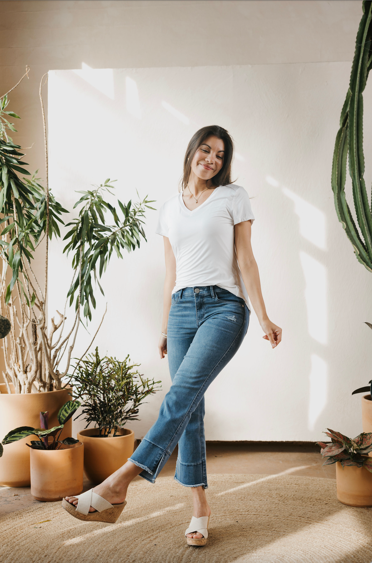 Our famous buttery soft fabric, in our essentials short sleeve tee. Incredibly comfortable, and the ideal v-neck tee to wear alone or layered.