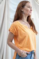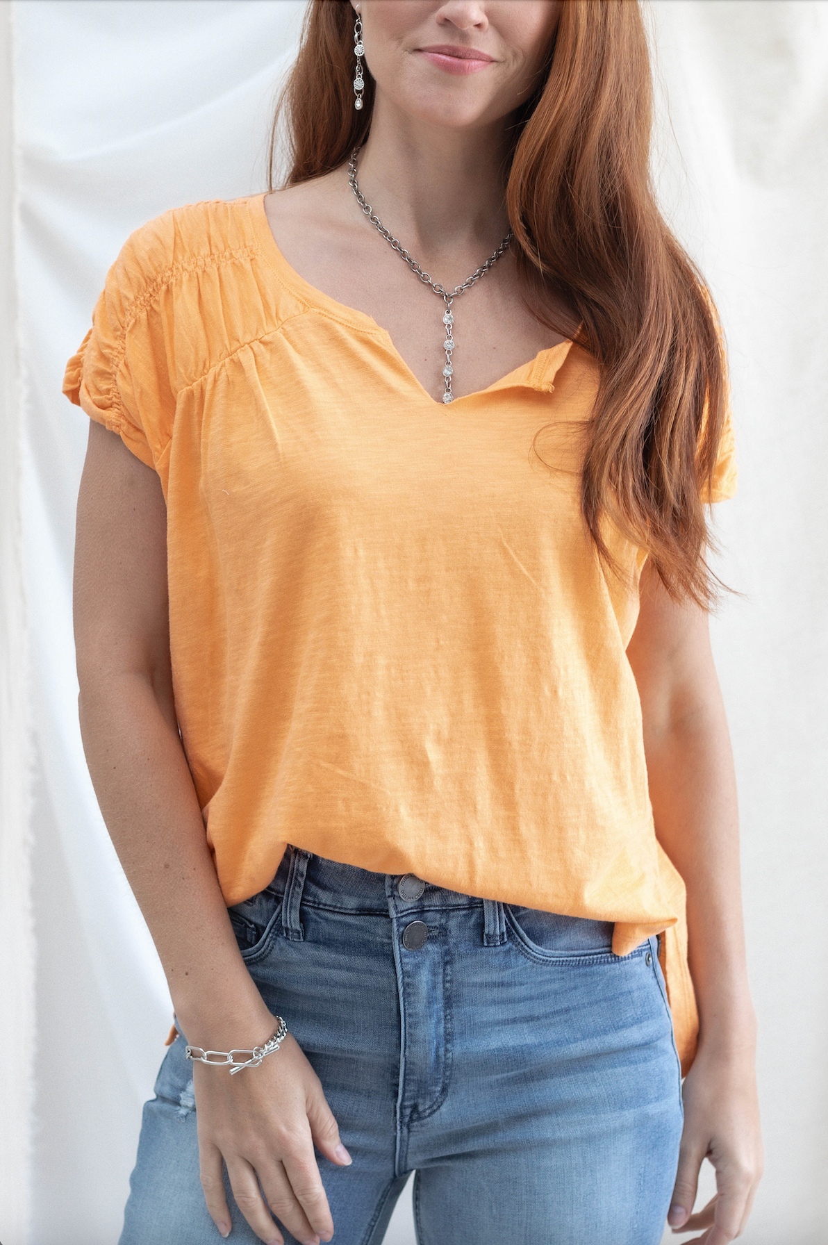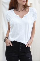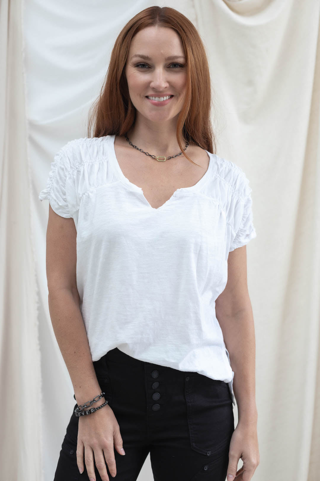 Ruched Notch Neck Short Sleeve - 2 Colors
