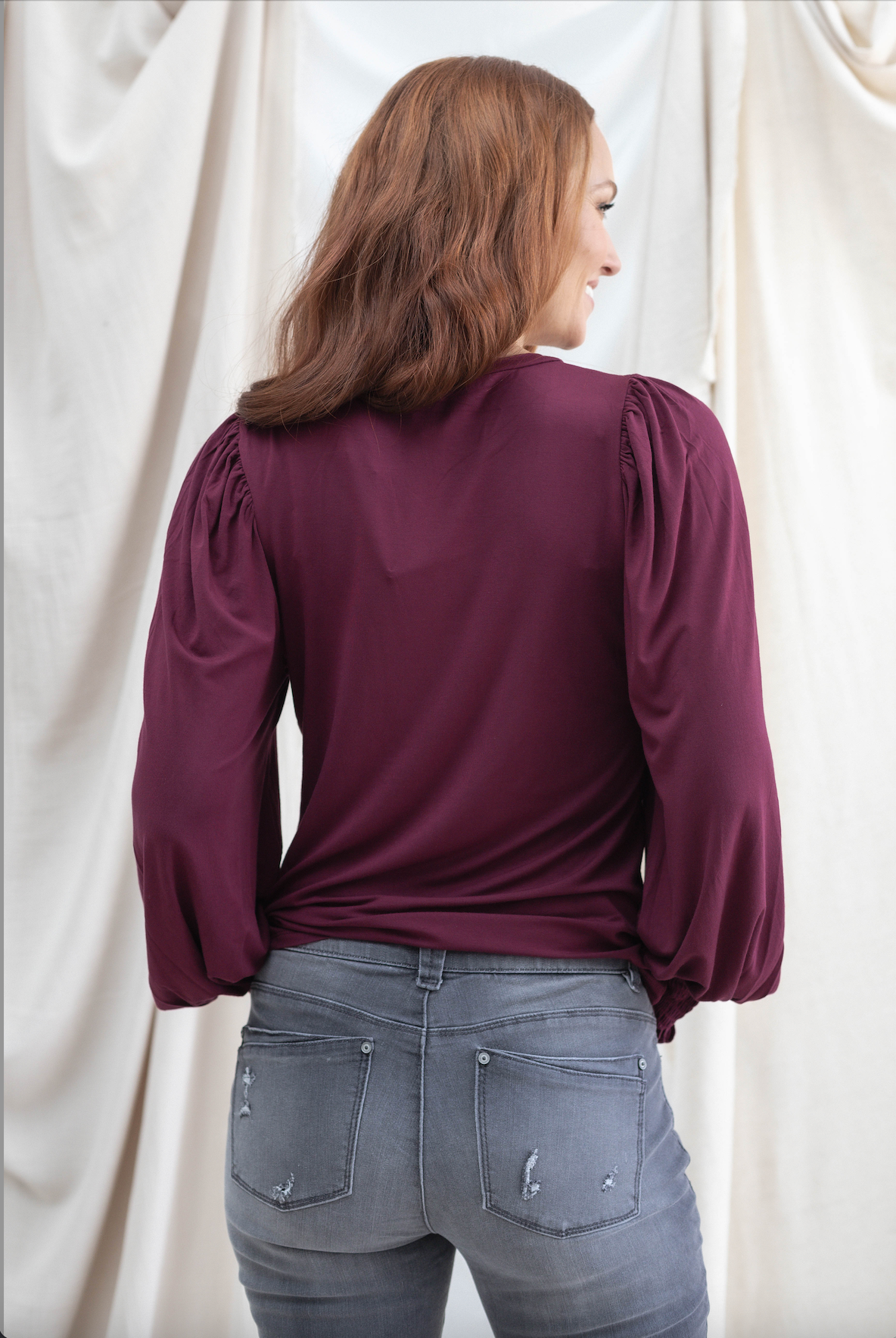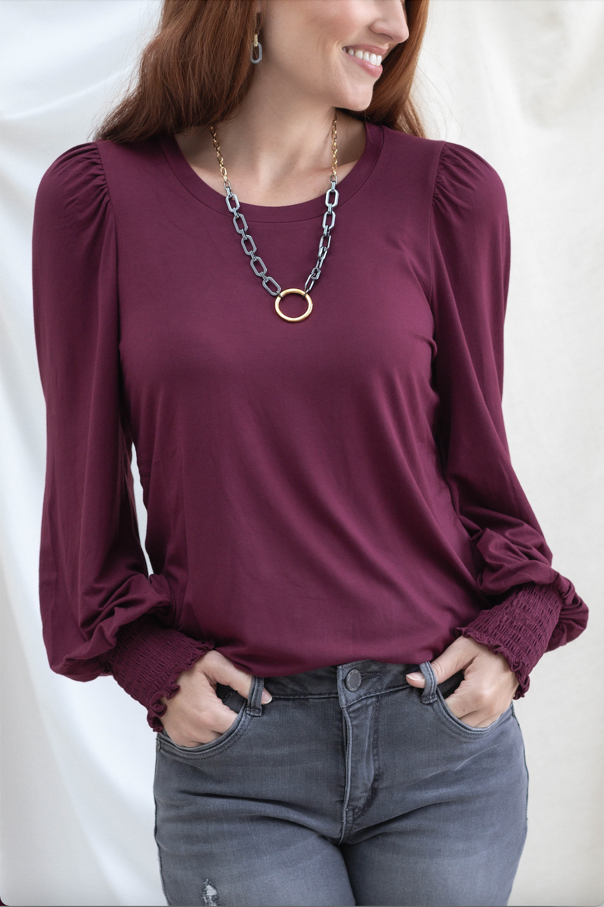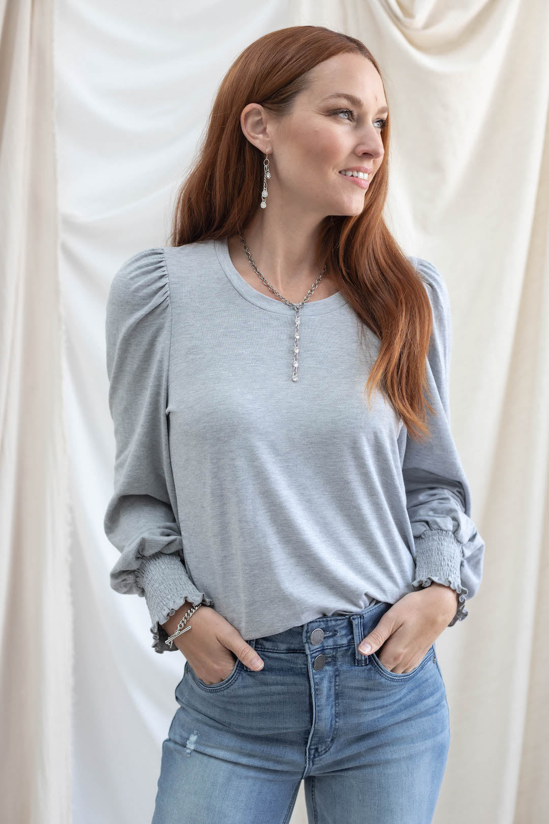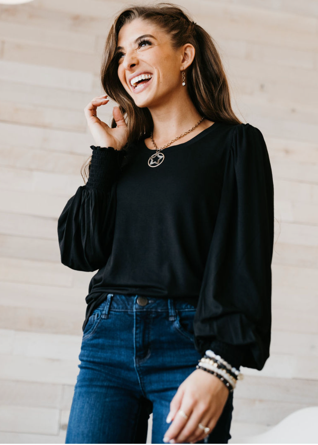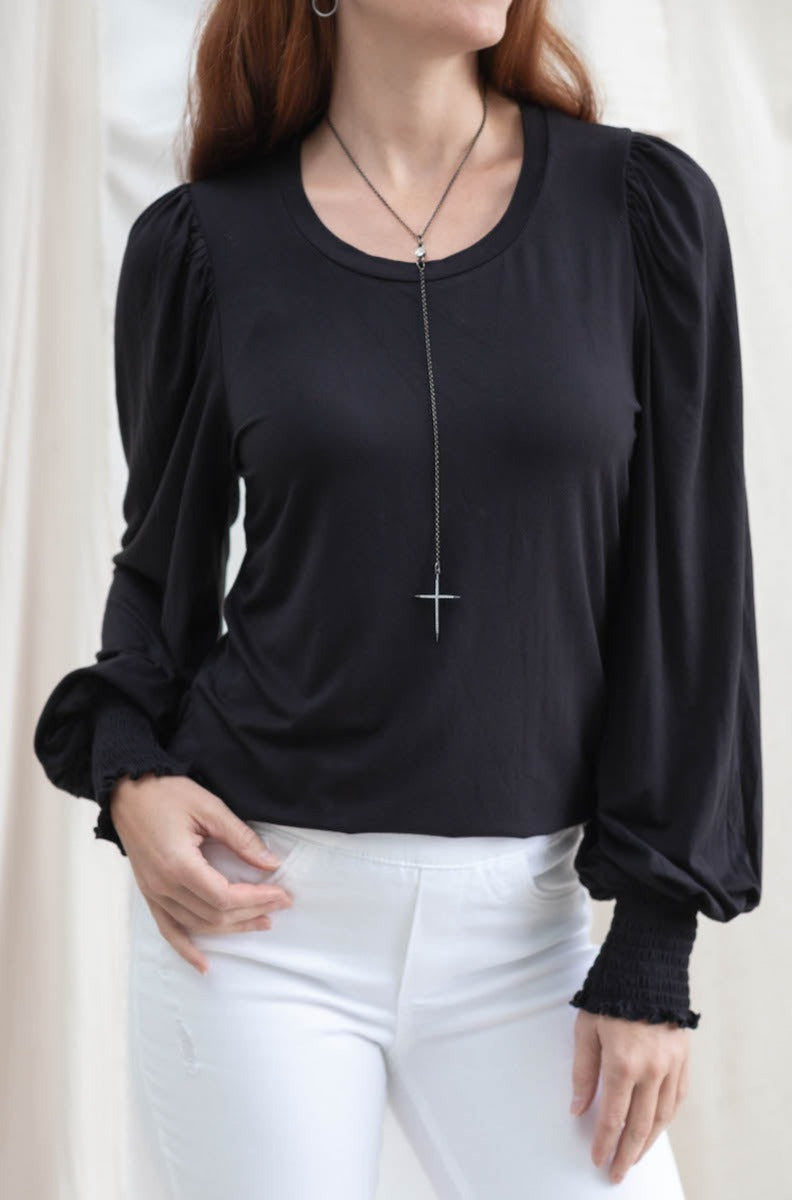 Smocked Wrist Balloon Sleeve Top